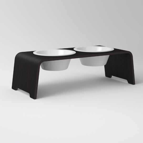 dogBar, Porcelæn Skåle // Foder- og vandskåle stativ (mørk eg)