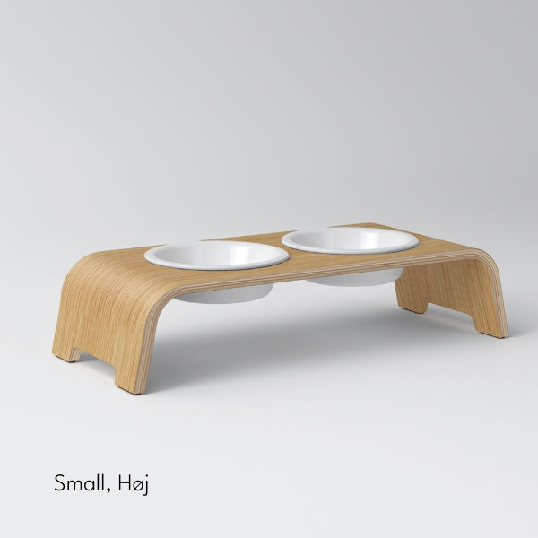 dogBar, Porcelæn Skåle // Foder- og vandskåle stativ (lys eg)