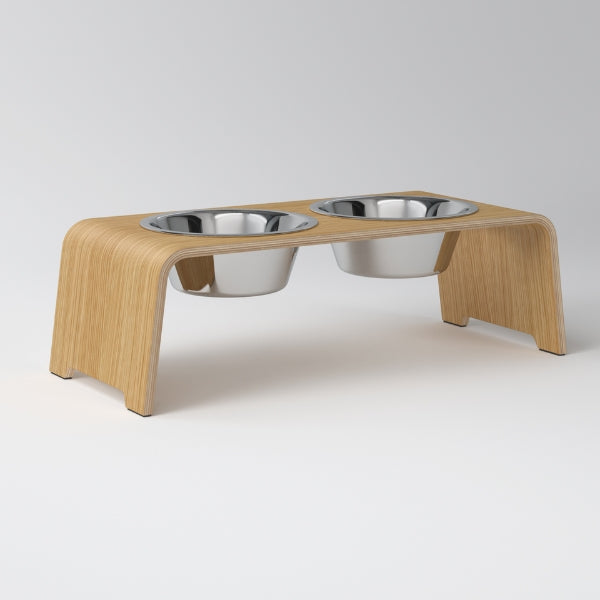 dogBar, Stål Skåle // Foder- og vandskåle stativ (lys eg)