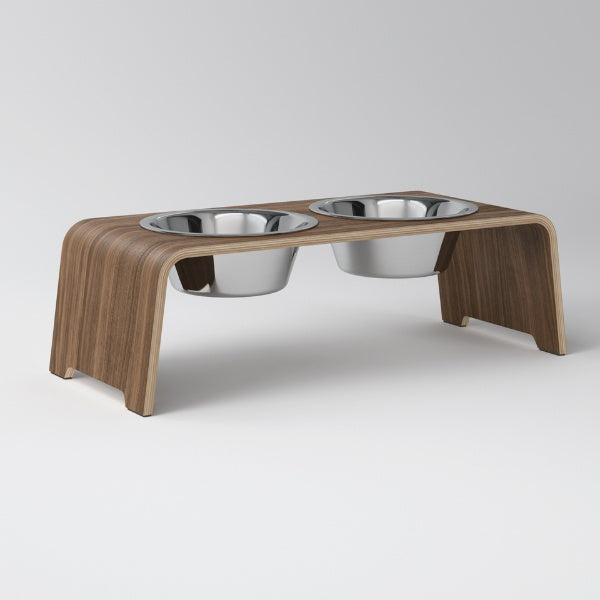 dogBar, Stål skåle // Foder- og vandskåle stativ (valnød)