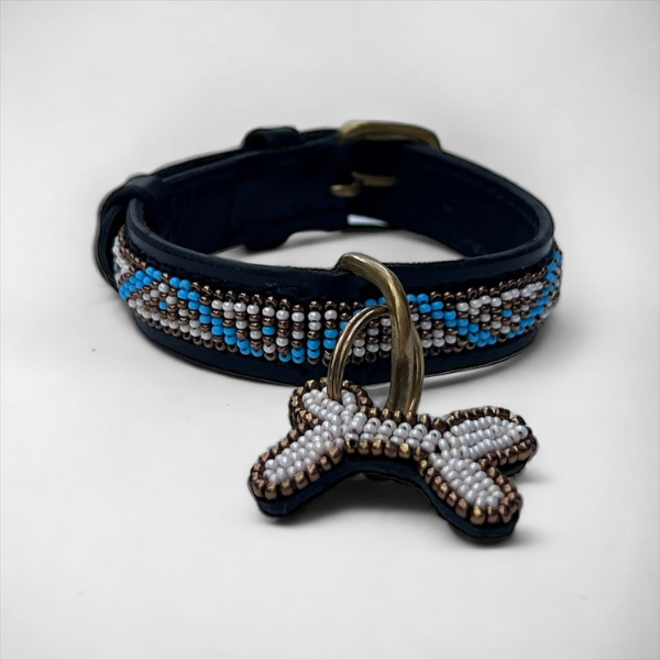 Zinj Kabaka Sky // Håndlavet hundehalsbånd med perler