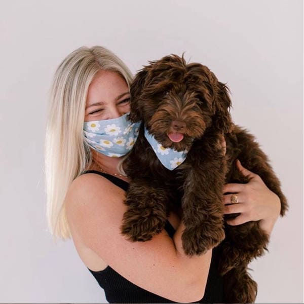 Mundbind Daisy chains // Mundbind i stof med blomster (blå)