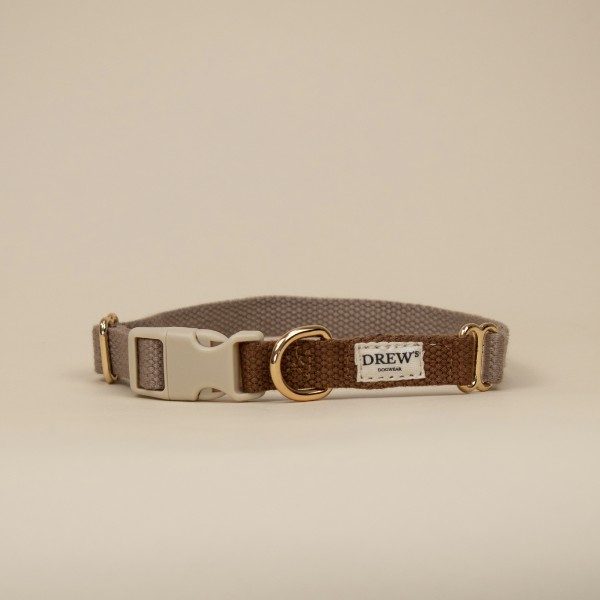 Drew's Dogwear Cortado // Justerbart halsbånd (brun/beige)