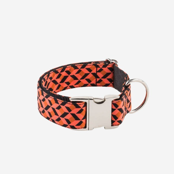 Brott Er // Håndlavet hundehalsbånd i nylon (geometrisk orange)