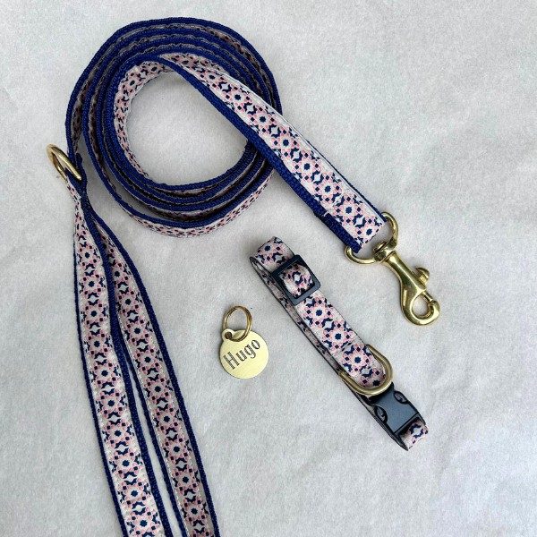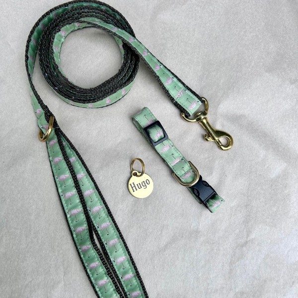 Hvalpesæt // Hvalpehalsbånd, hvalpeline og hundetegn (flamingo)