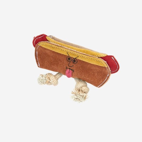 Harry The Hotdog // Hundelegetøj i ruskind med fyld af jute (hotdog)