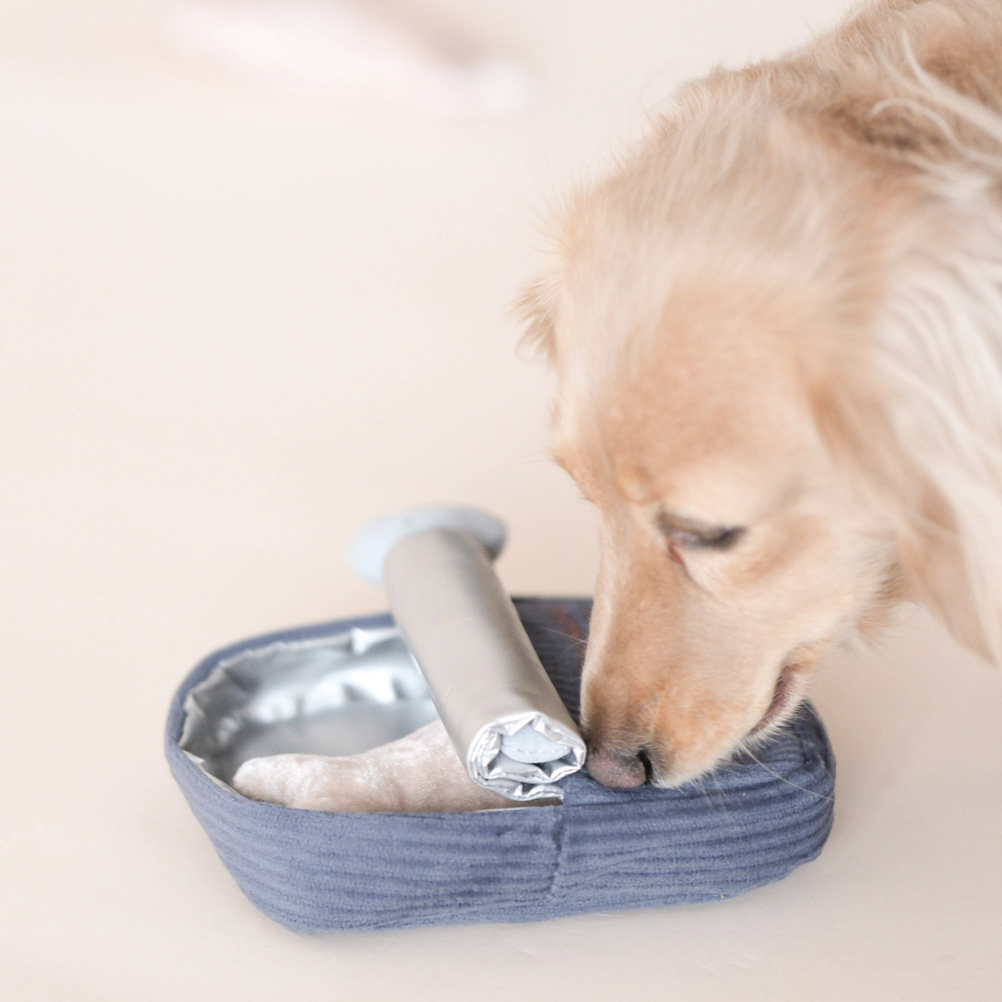 Legetøjet er udviklet til at stimulere hundens sanser, fremme naturlige instinkter og skabe gode legeoplevelser. Det er fremstillet i sikre materialer, så du trygt kan lade din hund lege og hygge sig.