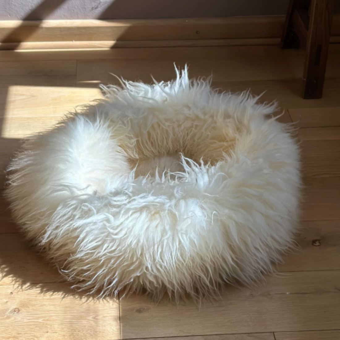 Helen Wells Sheep // Håndlavet donut hundseng i 100 % øko. fåreskind (creme)