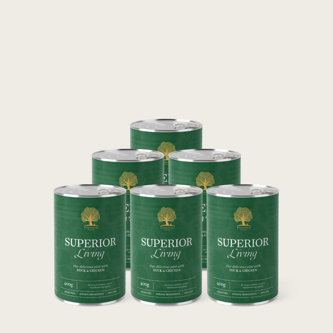 Essential Superior Living Paté // Vådfoder med and og kylling (6 x 400g)