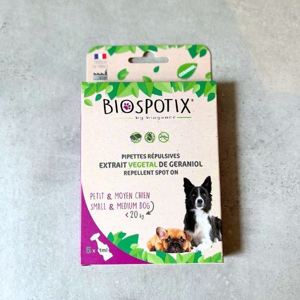 Biogance Biospotix Spot On is a natural product that protects the dog against ticks, fleas and mosquitoes for a minimum of 1 month.