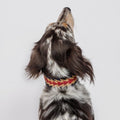 Elegant, soft, lightweight collar made from the finest materials. The collar gives a lovely bohemian look with vintage canvas and lovely patterns, and genuine Italian leather. Lightweight metal buckles with a matte finish complete the look.