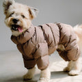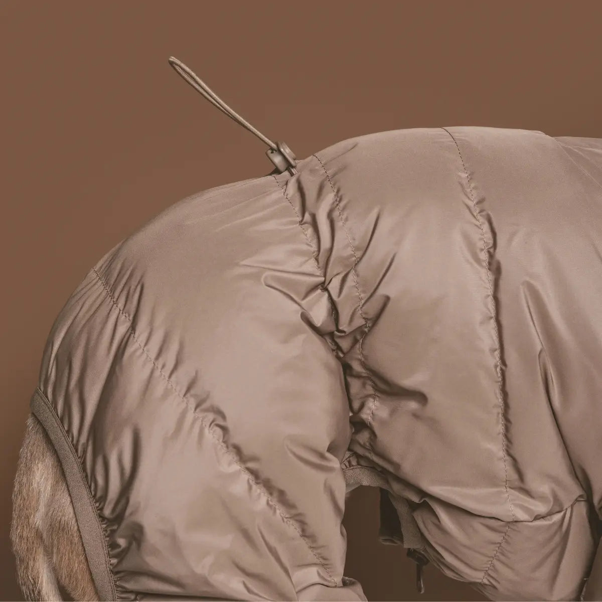 Keep your dog warm in the winter cold with this water-repellent, thermally insulating snowsuit that keeps warm down to -10°C. It's easy to put on: place it over your back, close around your legs and zip at the stomach. The suit offers full freedom of movement and can be adjusted with an adjustable waist and collar. It's made from 100% recycled polyester - a more sustainable choice. The zip opening on the back makes it easy to use a harness under the suit, and the zip is designed with a rubberised slider and protective fabric to prevent fur from getting caught.