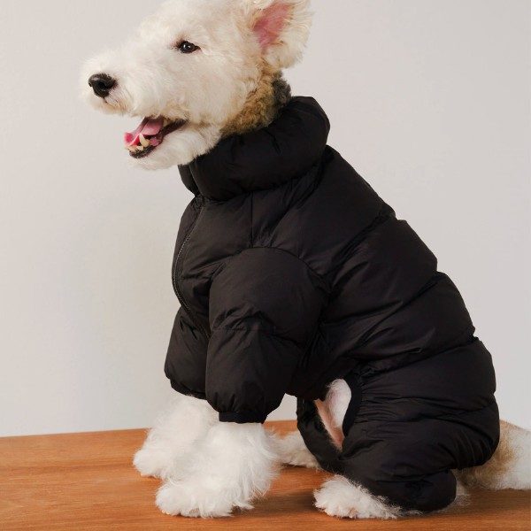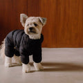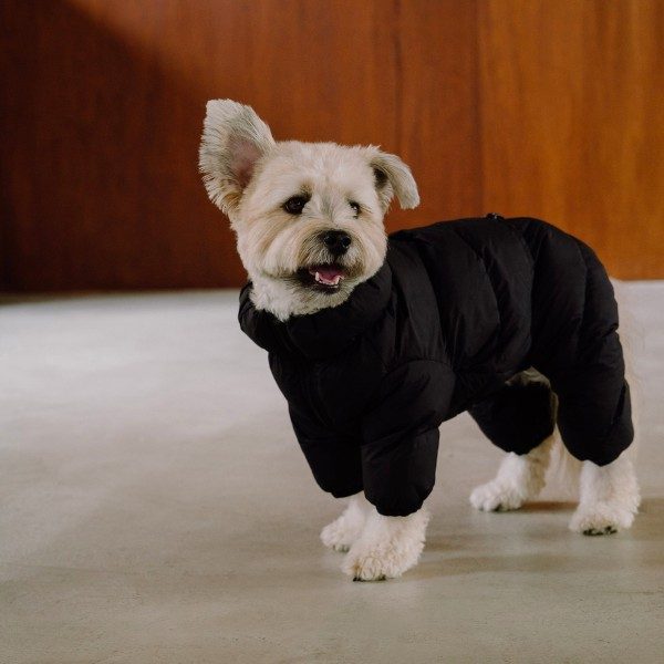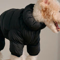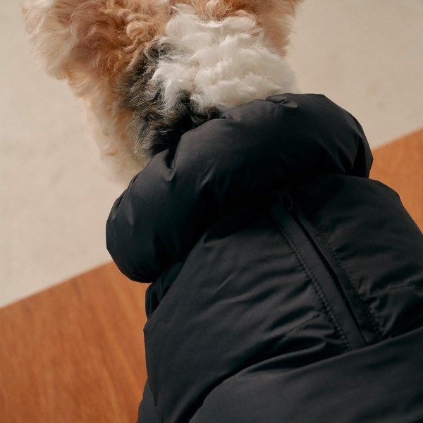 Keep your dog warm in the winter cold with this water-repellent, thermally insulating snowsuit that keeps warm down to -10°C. It's easy to put on: place it over your back, close around your legs and zip at the stomach. The suit offers full freedom of movement and can be adjusted with an adjustable waist and collar. It's made from 100% recycled polyester - a more sustainable choice. The zip opening on the back makes it easy to use a harness under the suit, and the zip is designed with a rubberised slider and protective fabric to prevent fur from getting caught.