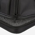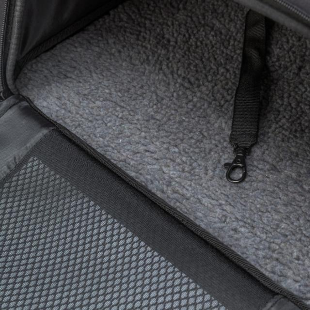 When you take your dog on a flight, you need a special travel bag. This transport bag can be attached to your suitcase and has a removable shoulder strap and two handles. The bag can be opened at the side, top and front, and has an outside pocket and an inside cord to secure your dog. The base plate is padded and waterproof and can be removed.