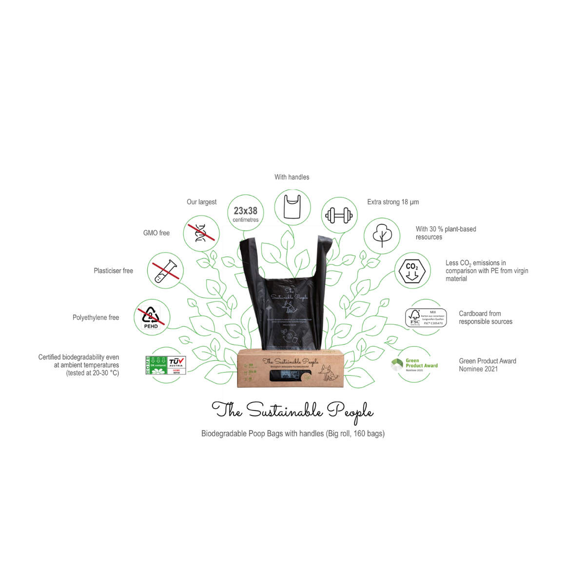 We use them daily, and carry them in our pockets or carry them in a small, practical bag – with these dog bags you also carry a very good conscience with you on walks. The bags are 100% biodegradable/compostable and both the bags and packaging are plastic-free. They are of good quality, soft and very easy to handle.