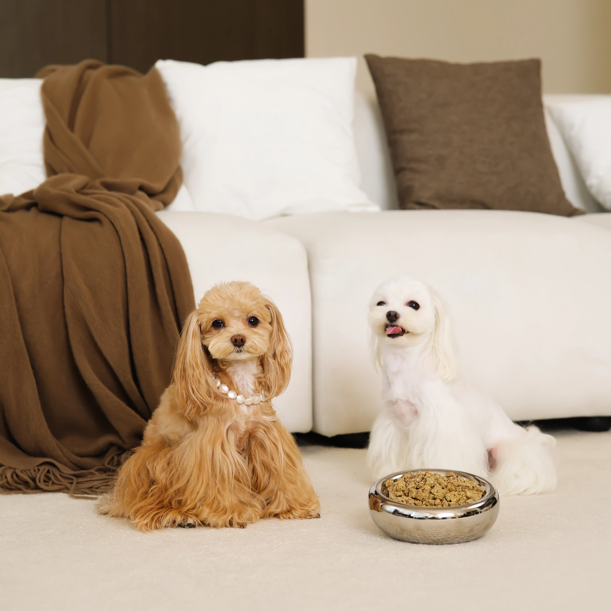 The Pebble dog bowl is inspired by the soft, rounded shapes of natural river stones and reflects a fascination with calm, organic forms from nature.
