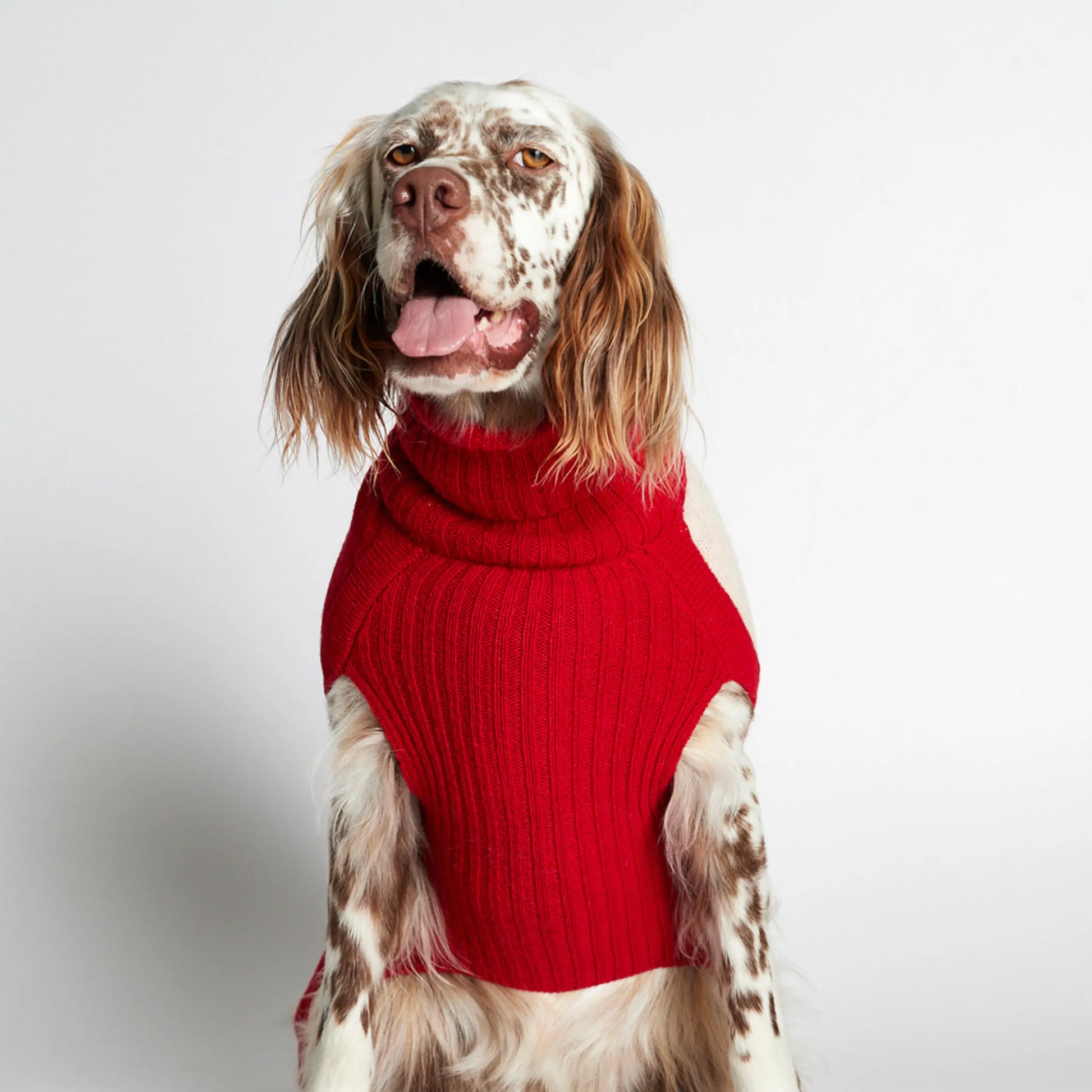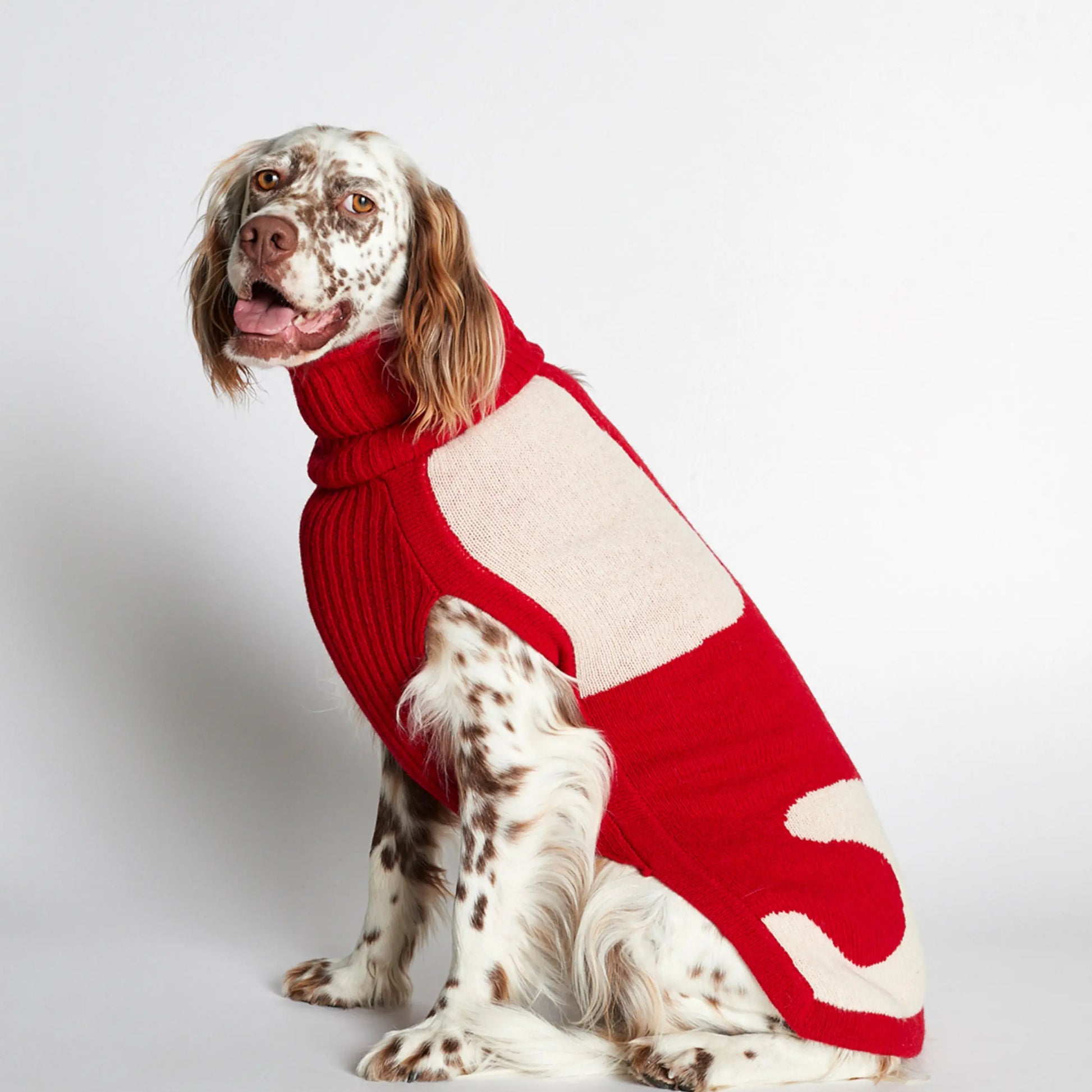The knitted Rene dog sweater is woven with a blend of high quality acrylic and merino wool. The dog sweater is therefore soft and light, making it versatile for both short-haired and long-haired dogs without itching or irritating. All the while still providing warmth, insulation and comfort. There is a small hole in the back so your dog can wear a harness and collar underneath without any problems.