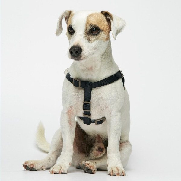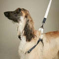Light and comfortable dog harness that is easy to put on. The dog steps into the harness so it doesn't go over his head. The harness can be adjusted both at the chest and behind the front legs, ensuring a good fit.