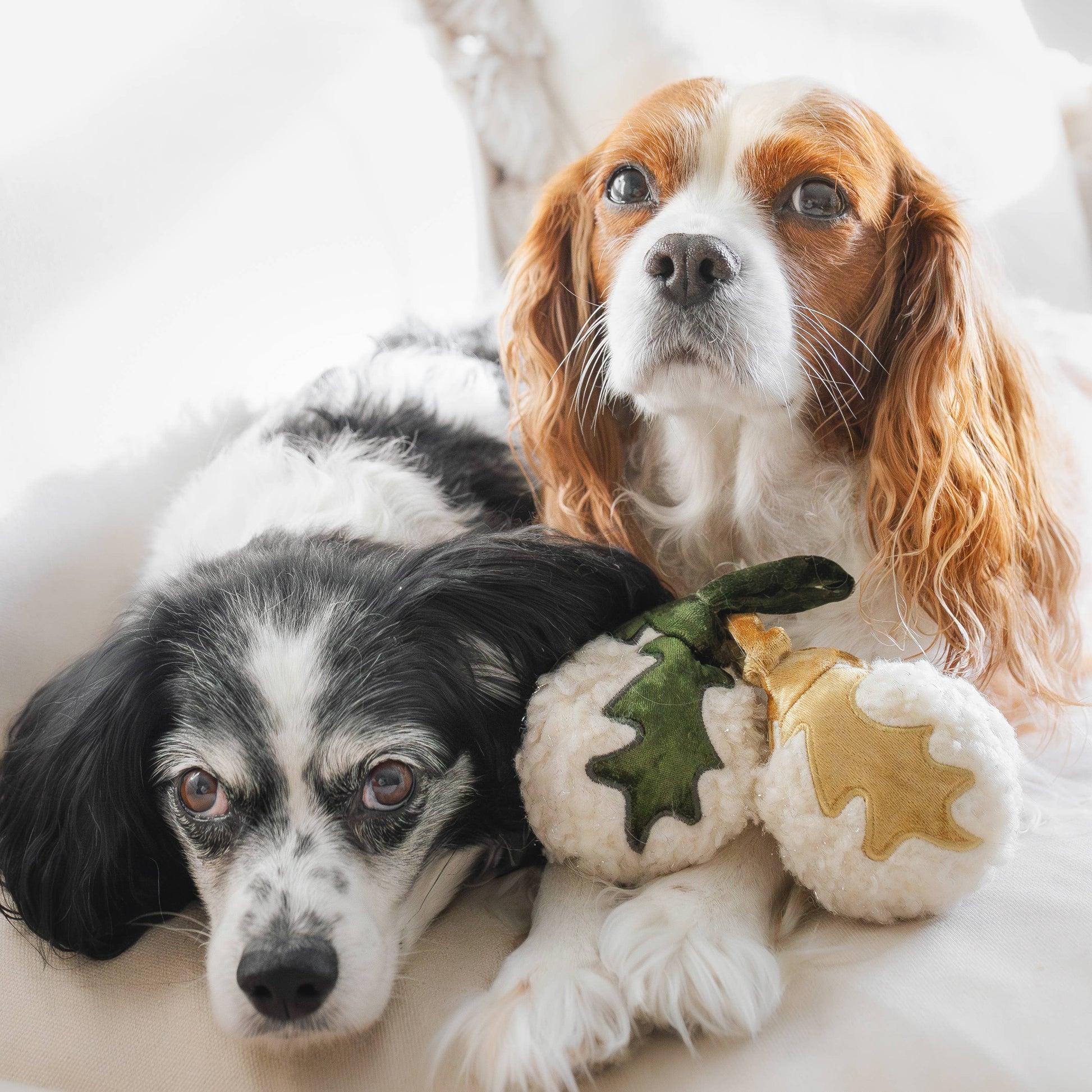 Give your home a touch of Christmas spirit with these beautiful Christmas baubles! Made from soft, plush fabric, the baubles serve as both a cozy Christmas decoration and a fun little toy for your dog. They can even be hung on the Christmas tree – just to spread some extra joy in December.