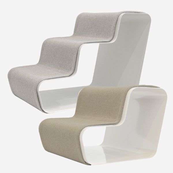 Denne variant har pulverlakeret, hvidt stål - du vælger selv hvilken farve stof og hvor mange trin trappen skal have.