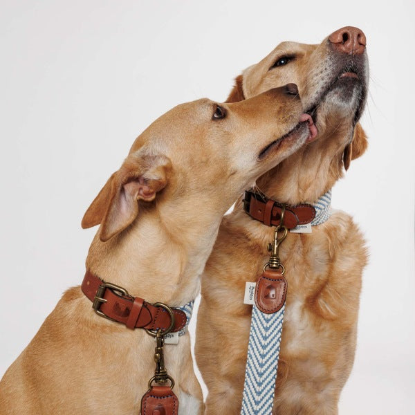 De smukke og lette farver minder os om varme sommerdage, og halsbåndets sommerlige udtryk fuldendes med cognacfarvede læderdetaljer. Dette er et helt let og bredt halsbånd designet til at give din hund komfort, både når den har det på i løbet af dagen og når i er på tur. Den brede overflade trykfordeler vægten, som en hund lægger ud i halsen når den gerne vil frem, det er derfor mere skånsomt for nakke og ryg.