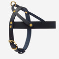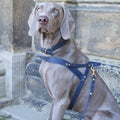 Butter Navy-selen har en justérbar rem, som lukkes bag forbenene, og den er velegnet til små og mellemstore hunde. Spænder og ringe i massiv messing fuldender den eksklusive kvalitet, og nitterne er belagt med messing.