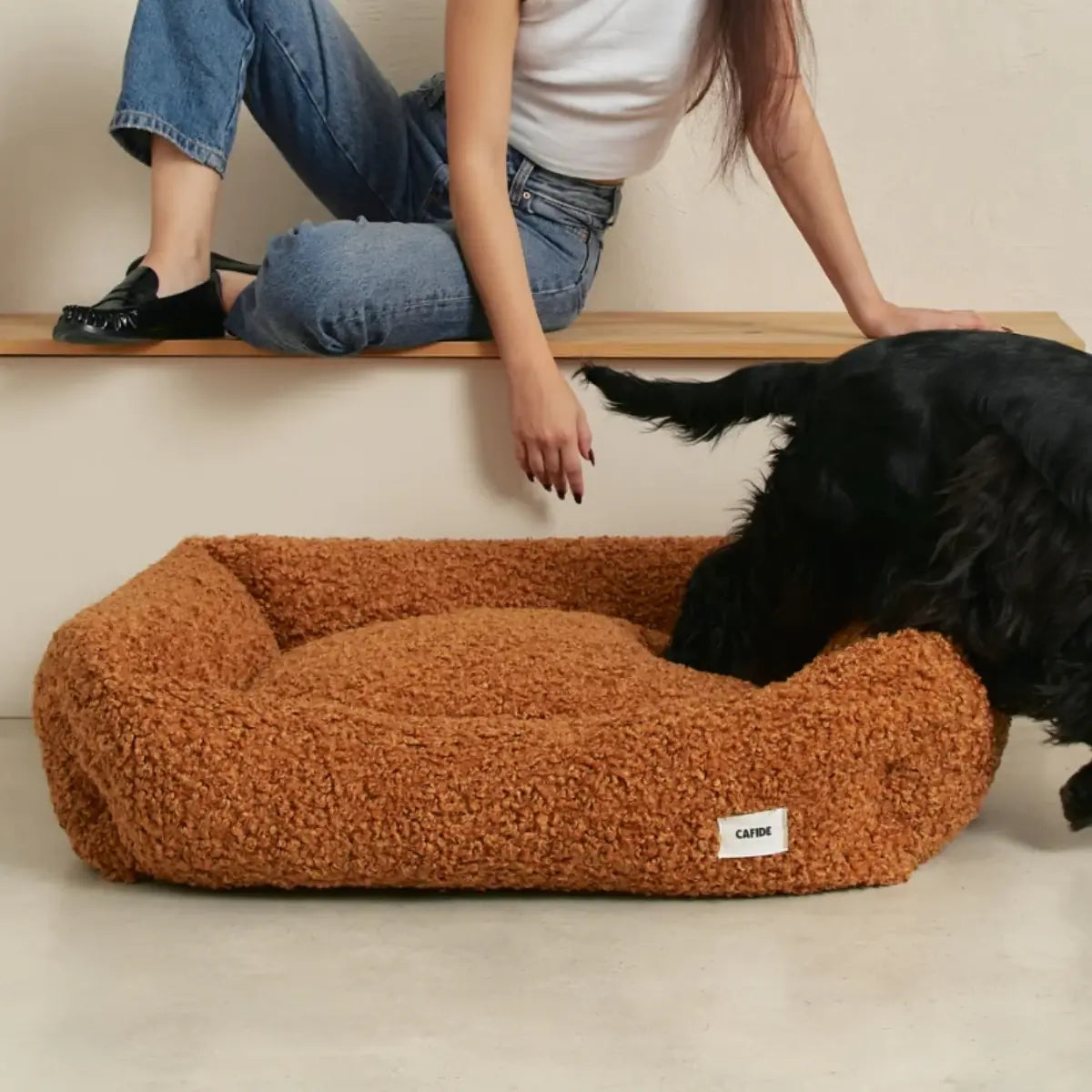 Cafide Snozy // Blød og vaskbar teddy hundeseng (sennep)