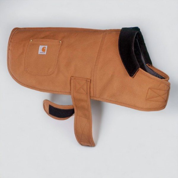 Vores hunde fortjener samme kvalitet som os og derfor er dette den perfekte overgangsjakke til din hund! Carhartts Dog Coat er som skabt til det danske vejr med både vandafvisende belægning og quilted inderfór med polyester polstring. Jakken har et moderne klassisk Carhartt design med to smarte lommer på hver side med fine detaljer. Velcro lukning ved brystet og under maven gør det nemt at få jakken af og på, og gør det ligeledes muligt at justere jakken hvis der skal en ekstra sweater indenunder.