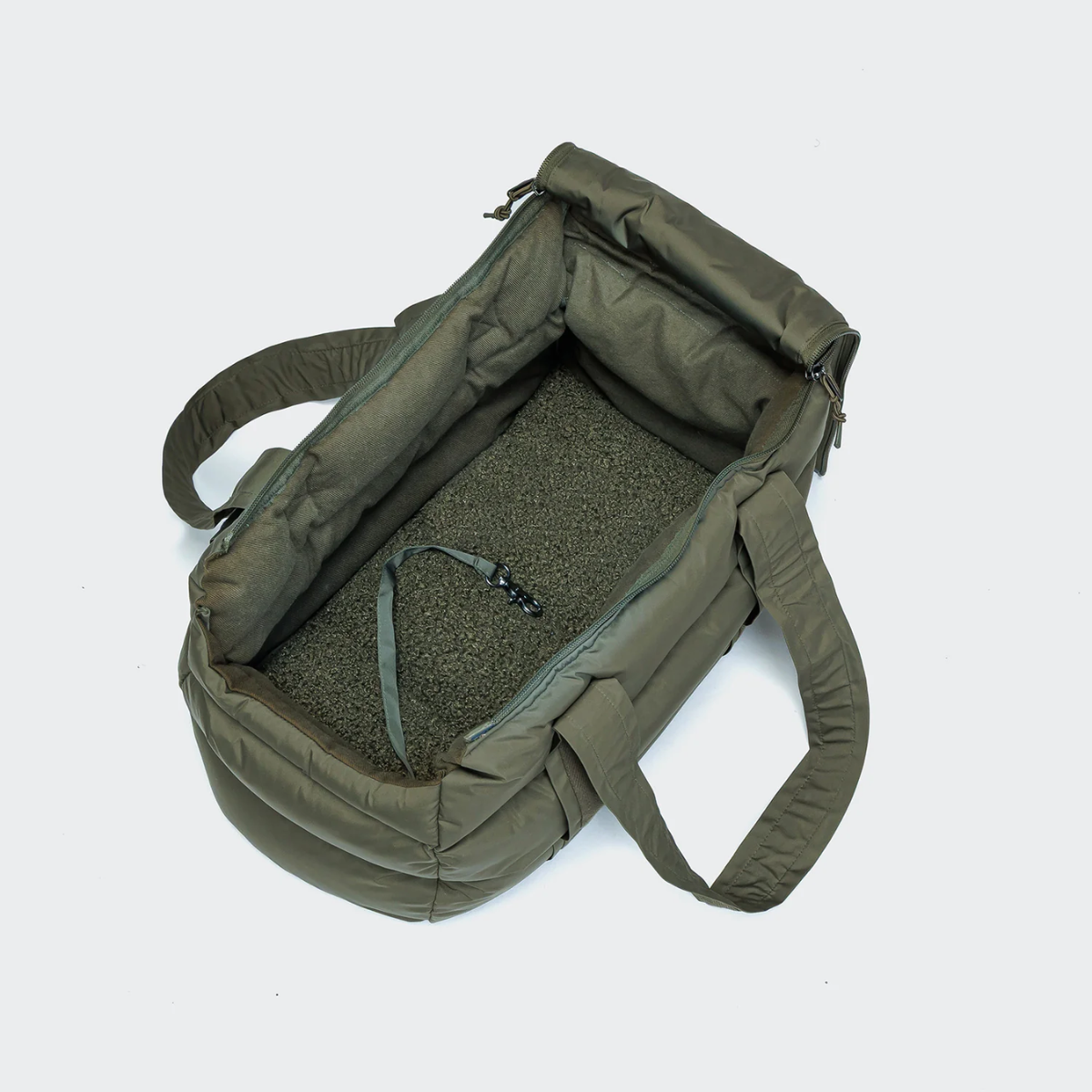 Funktionel og komfortabel hundetaske lavet af genbrugsmaterialer, polstret med bæredygtig Eco Puffer. Lavet med vandafvisende, genanvendt foring er hundetasken den ideelle rejseseng og takket være lynlåslukning, kan tasken forvandles til en tryg hule, når det er stressende.