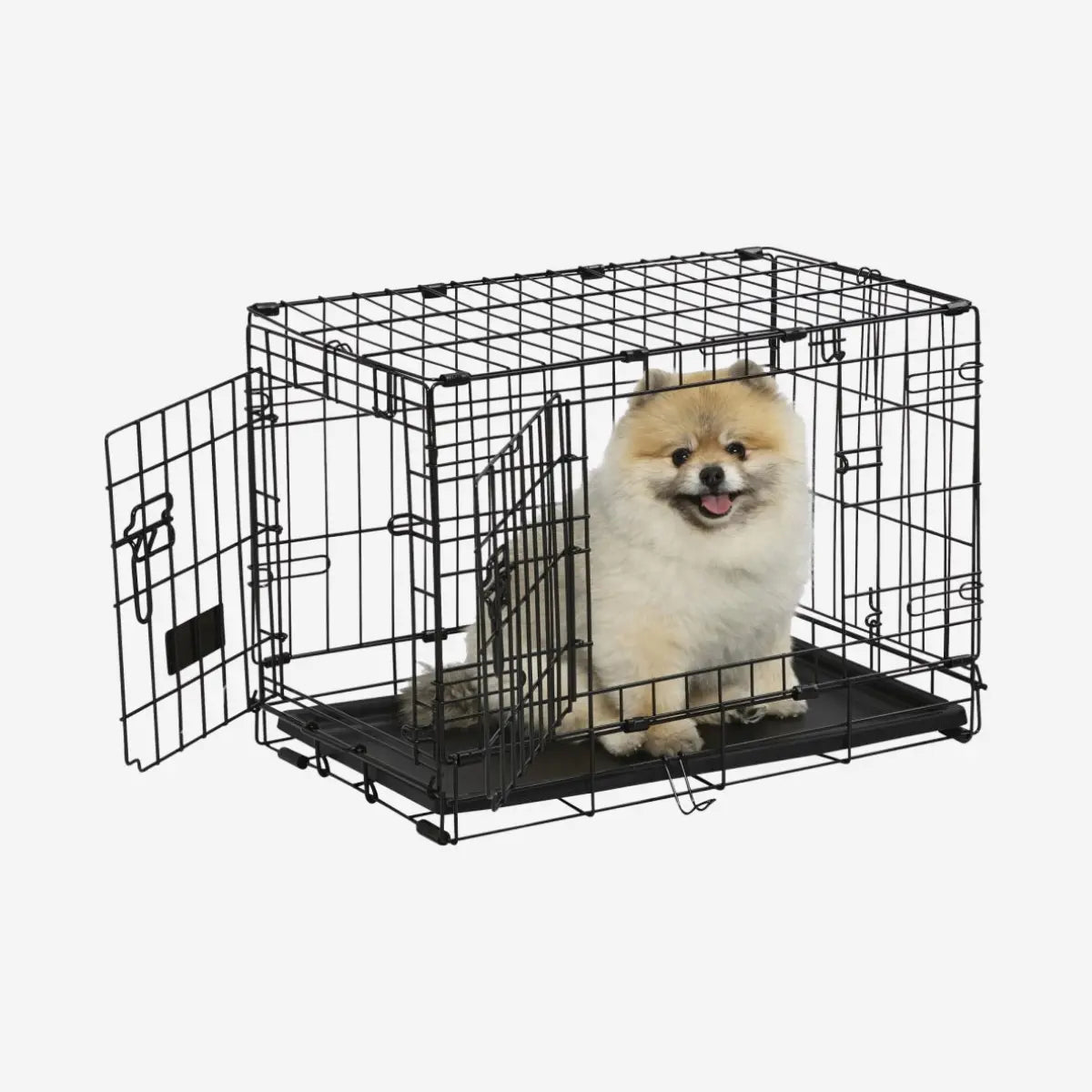 Vi anbefaler, at du træner din hund til at være i buret og gradvist vænner den til det.