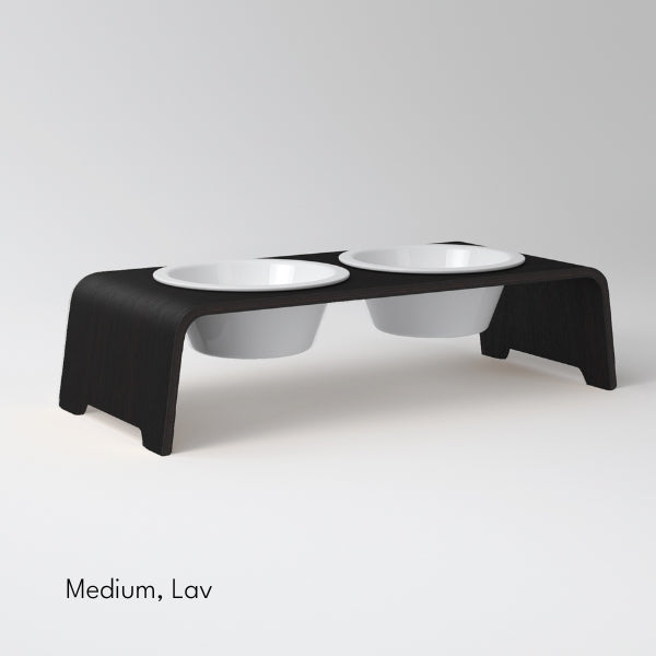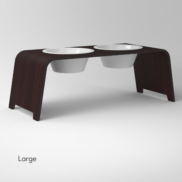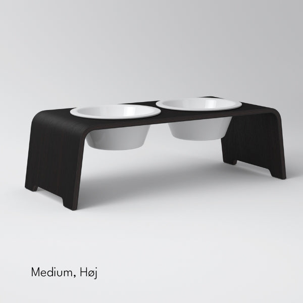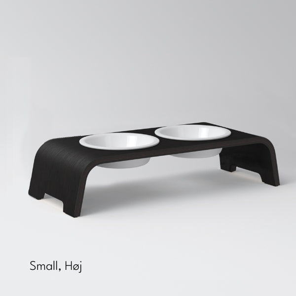dogBar, Porcelæn Skåle // Foder- og vandskåle stativ (mørk eg)