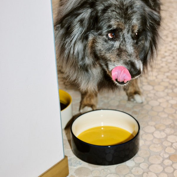HAY Dogs Bowl Large // Hundeskål i keramik (gul/navy)