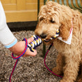 En slidstærk og flettet hundesnor, lavet af genanvendt polyesternylon. Snoren fås i forskellige flotte farvekombinationer og er udstyret med en robust karabinhage, der sikrer en tryg fastgørelse.
