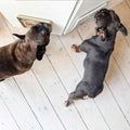 Smør et lag vådfoder ud på pladen og lad din hund nyde en langsommelig snack. Når hunden slikker øges spytproduktionen, der hjælper til en god fordøjelse. Derudover frigives der også beroligende endorfiner i din hunds krop.