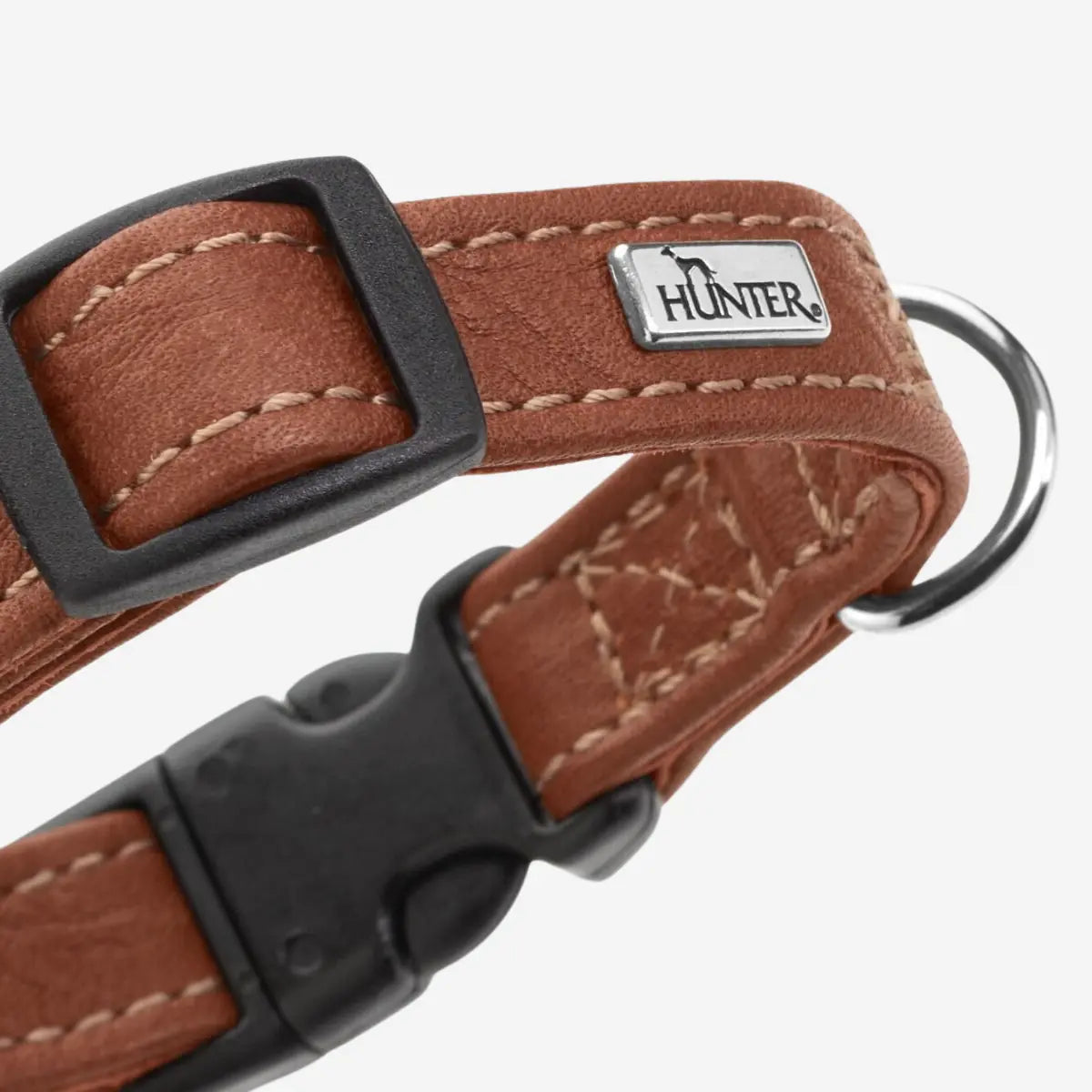 Hunter Canadian // Læderhalsbånd til hvalpe og små hunde (cognac)