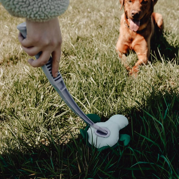 Selve kastepinden gør det nemt at samle det våde (og måske sandede) legetøj op igen uden selv at få beskidte hænder. Og så kan den slynges langt, uden den store indsats fra kasteren selv.
