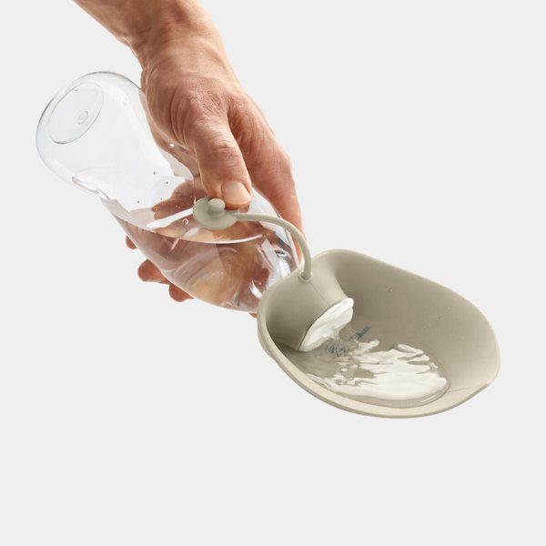 Gør det nemt for din hund at få vand når I er på tur og på de varme dage. Drikkeflasken har indbygget "skål" i silikone der ikke fylder ekstra. Skålen foldes op langs flasken så den ikke fylder ekstra.
