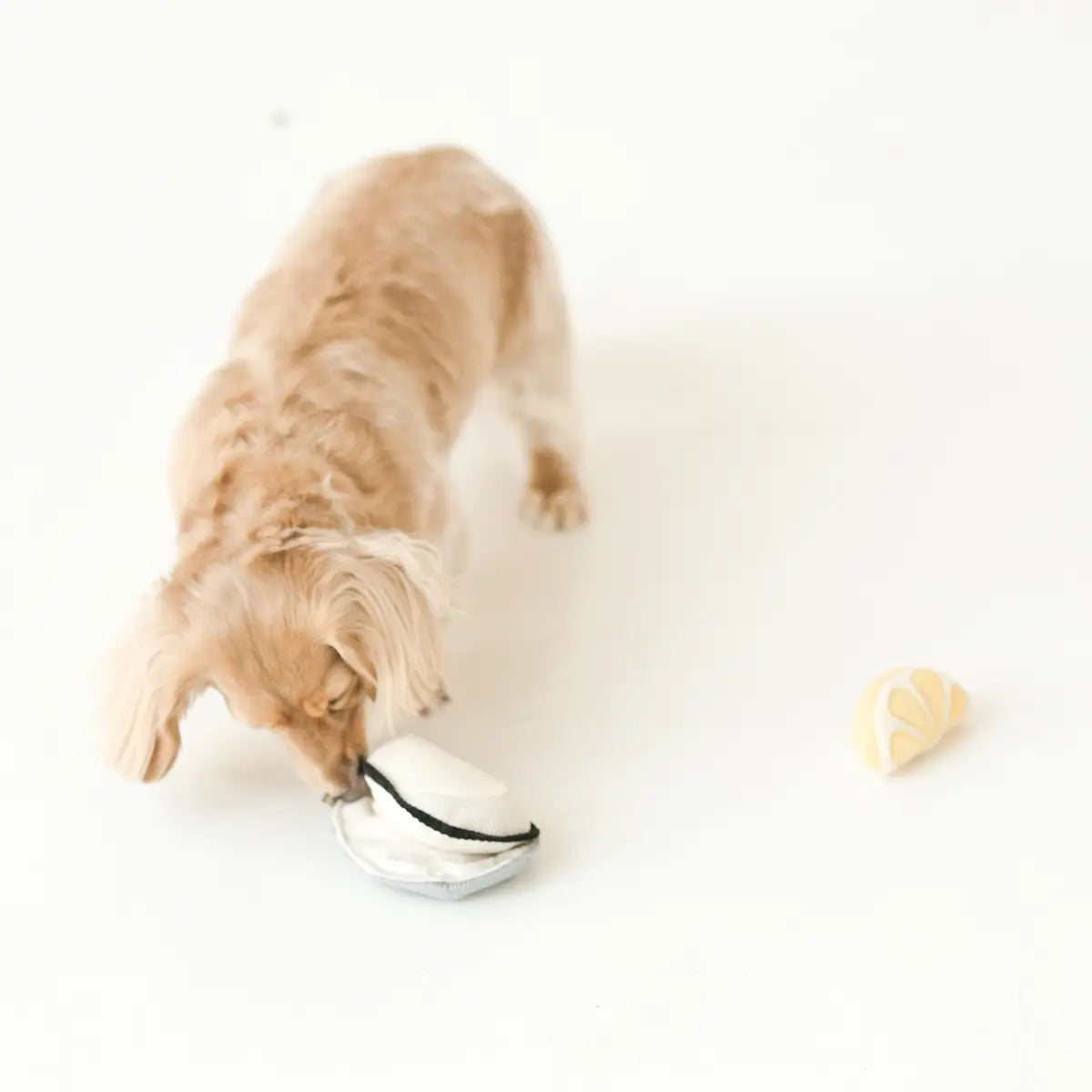 Dette overdådige legetøjssæt består af en østers med knitrende østersskal og citronbåd med piv. Indeni østerskallen kan du gemme godbidder, designet som en relativ nem snuseudfordring, hvilket gør den ideel til små begyndere, der netop er startet på deres 'snuseeventyr'. De forskellige teksturer holder din hund engageret, mens den graver efter godbidderne.