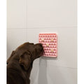 Denne slikkemåtte har sugekopper på bagsiden, så den også kan sættes fast på glatte overflader – perfekt til fx badet.