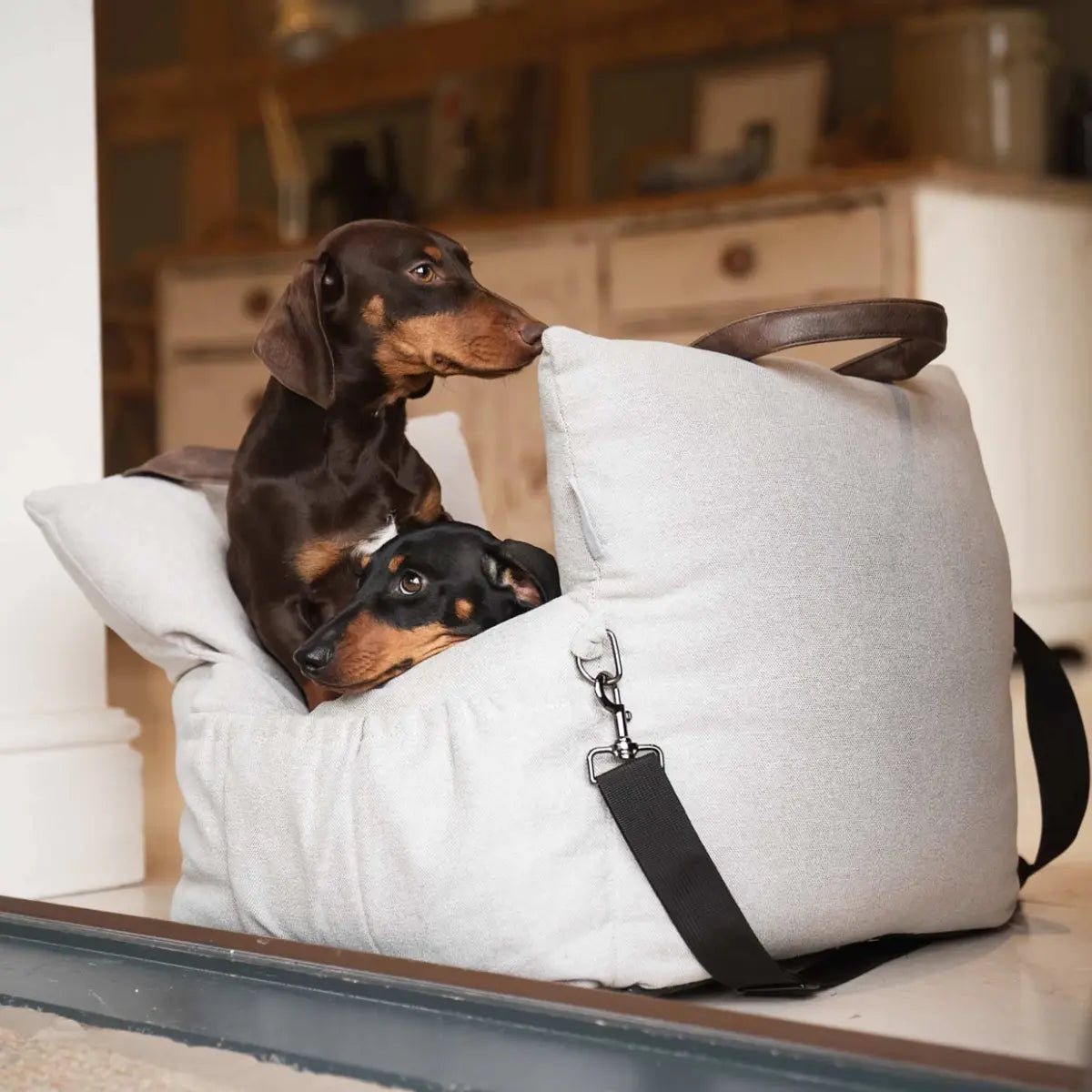 Dette bilsæde til hunde er en smart 3-i-1 løsning, der fungerer som både bilsæde, hundetaske og hundeseng. Den har en vendbar og aftagelig pude, skridsikker bund og stropper til nakkestøtter, der sikrer stabilitet og komfort under kørslen. Med ekstra lommer til opbevaring af rejseudstyr og en fastgørelse til større kæledyr er den både praktisk og sikker. Sengen dækker hele bagsædet for maksimal beskyttelse og er fyldt med blød polyesterfiber for optimal komfort.