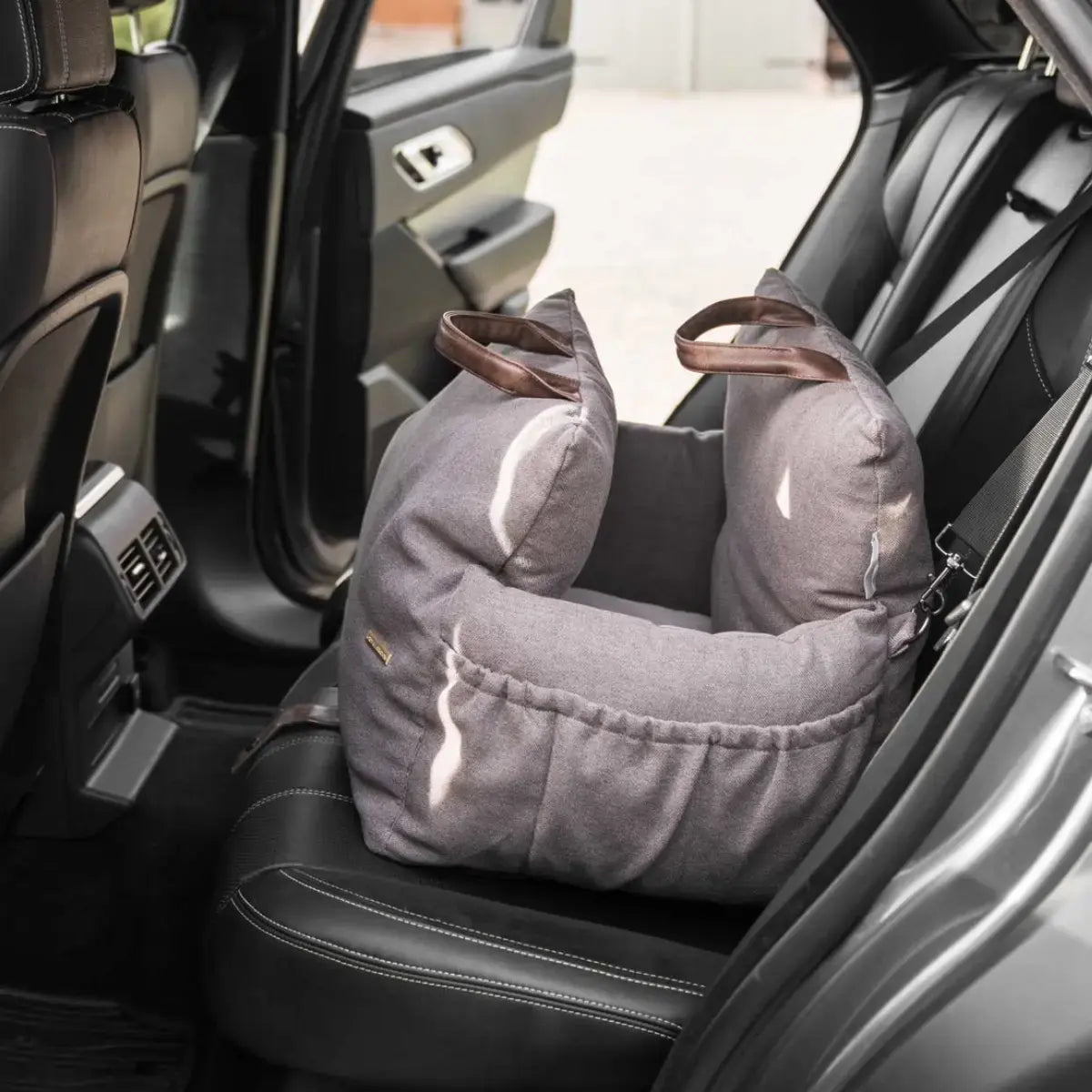 Dette bilsæde til hunde er en smart 3-i-1 løsning, der fungerer som både bilsæde, hundetaske og hundeseng. Den har en vendbar og aftagelig pude, skridsikker bund og stropper til nakkestøtter, der sikrer stabilitet og komfort under kørslen. Med ekstra lommer til opbevaring af rejseudstyr og en fastgørelse til større kæledyr er den både praktisk og sikker. Sengen dækker hele bagsædet for maksimal beskyttelse og er fyldt med blød polyesterfiber for optimal komfort.