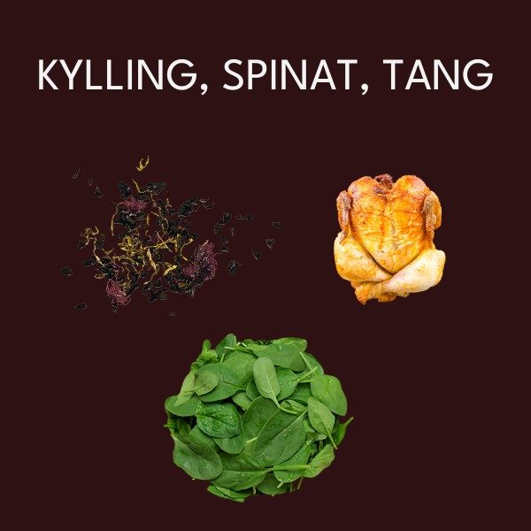 Frisk og fedtfattigt foder, som består af 80 % kyllingekød tilsat nærende spinat, lækkert tang og er fyldt med vitaminer og mineraler og ikke mindst smag! Kyllingekød er en mager kilde til sund protein, spinat er fyldt med vitamin E og K, samt magnesium og tang er en naturlige kilde til jod, som understøtter skjoldbruskkirtlen og fremmer pels - og tarmsundhed.