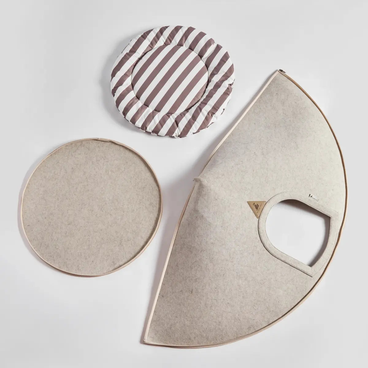 Den fungerer som et trygt fristed for hunden og passer naturligt ind i hjemmet med sit enkle, æstetiske udtryk. Hulen samles nemt med lynlås, kan maskinvaskes og rulles sammen i den medfølgende rejsetaske – en praktisk løsning til både hverdag og på farten.