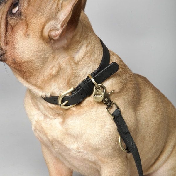 Fuldend looket med den matchende hundeline i nubucklæder.
