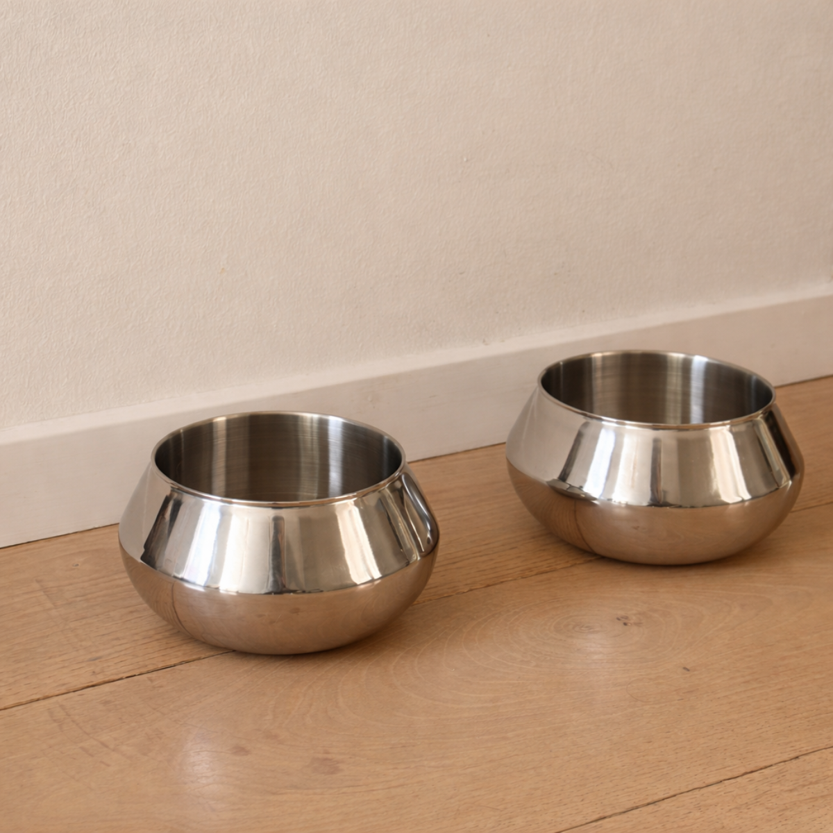 Fremstillet i rustfrit stål udnytter skålen materialets naturlige, hygiejniske egenskaber. Den dobbeltvæggede konstruktion fungerer samtidig som termo, så især vandet holder sig køligt og friskt i længere tid. Skålen er desuden nem at rengøre og velegnet til daglig brug.