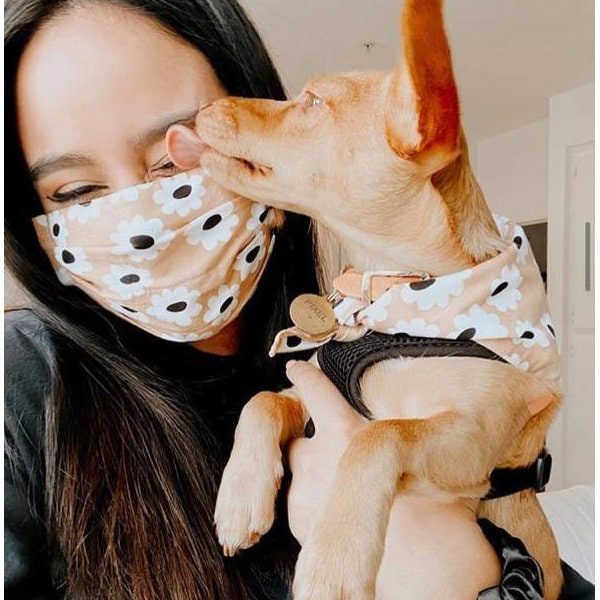 Match din hunds bandana når I tager på eventyr med et fint mundbind. Mundbindet i stof er lavet med 3 lag og er en one size, der passer de fleste.