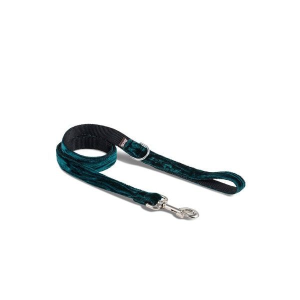Super elegant hundeline i blød, irgrøn-sort velour. En stilfuld line, der vil klæde både din hund og dig. Linen er 120 cm lang. Fuldend look'et med det matchende Martingale halsbånd her.