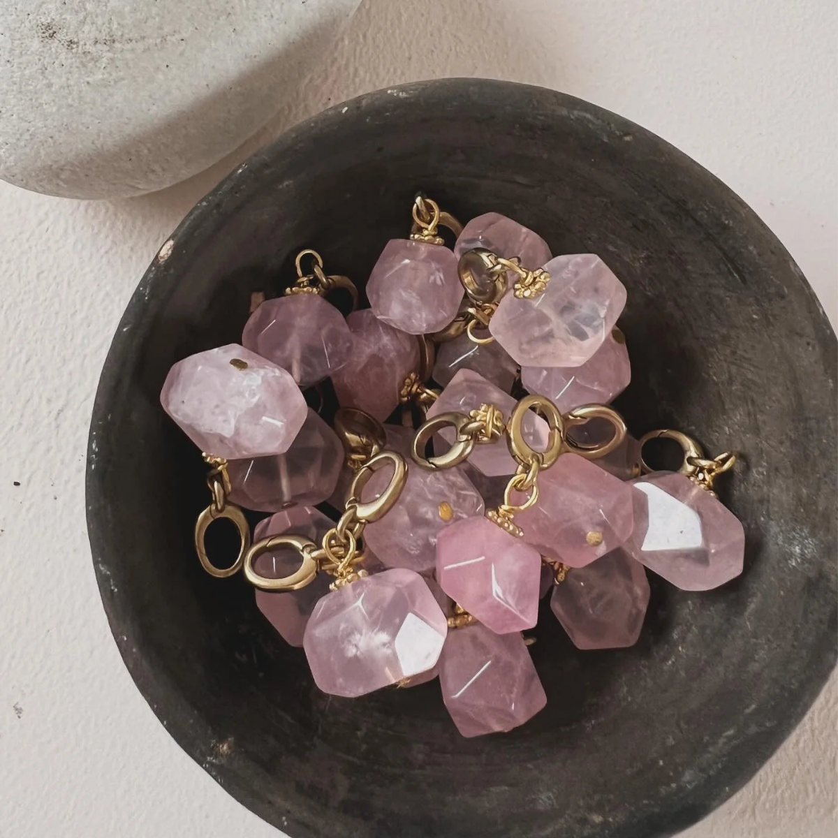 Rose quartz/rosakvarts er stenen for ubetinget kærlighed og fremmer healing, følelsesmæssig balance og dybere, medfølende forbindelser.