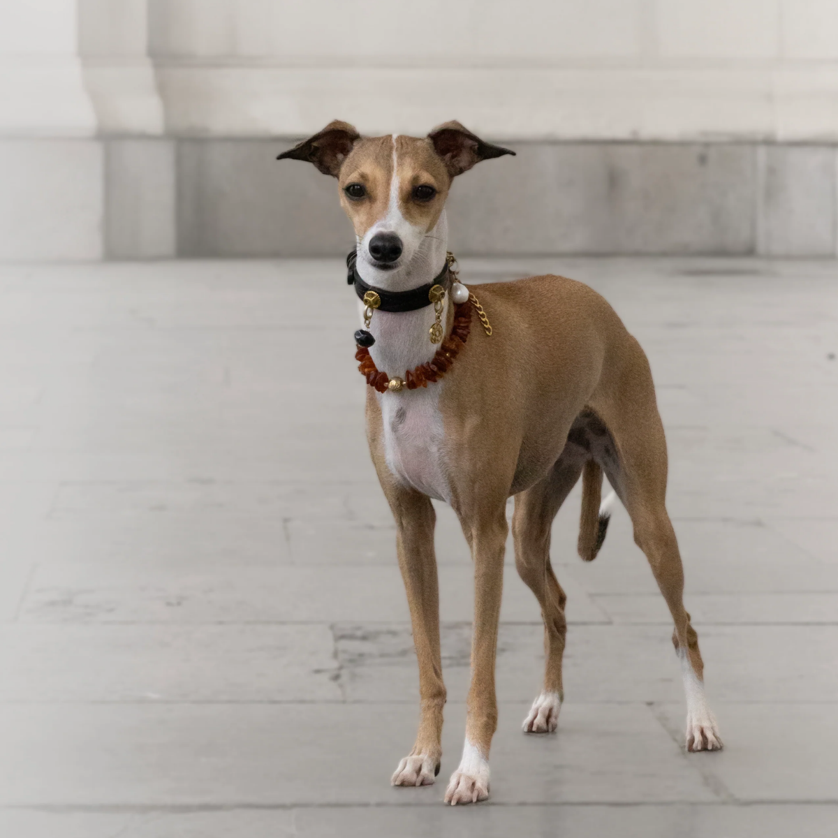 Hos Unleash Cph arbejdes der med rav for dets naturlige skønhed og funktionelle kvaliteter. Ravhalskæderne er skabt til ikke kun at pynte, men også at støtte — de kombinerer beskyttelse, ro og et tidløst udtryk, der giver hunden komfort og balance, uanset om den udforsker skoven eller går en rolig tur i byen.