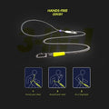 Den håndfri hundesnor kan bæres rundt om taljen eller cross-body og kan nemt justeres til den rigtige længde med et spænde, der kan låses fast ved den ønskede længde.